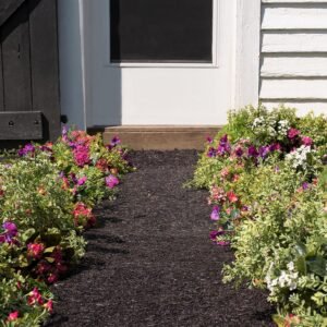 Our Permanent Mulch Recycled Rubber Pathway is a mulch look-alike that takes the work out of landscaping. Perma Mulch deters weed growth, but allows air, nutrients and water to pass through.