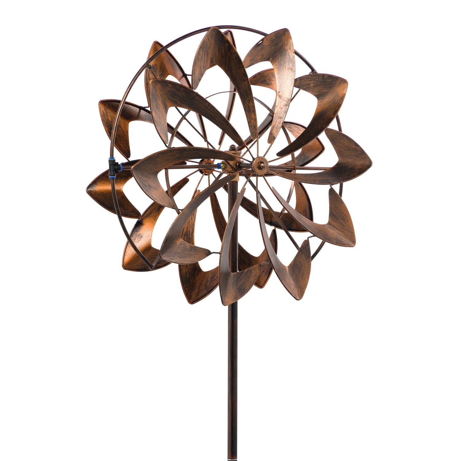 Harness the power of Mother Nature with this Blades Hydro Wind Spinner that comes alive with each passing breeze. The inner helix spins in the wind while water sprays out of the tubes, delivering a graceful cascade of refreshment to your lawn. It’s impossible not to delight in this spinner’s intricate beauty. You can enjoy the spinner year-round with or without the hydro feature, as the inner helix moves even when the water supply is turned off.
