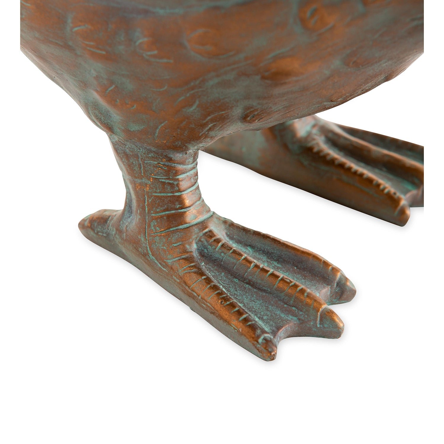 Our mother and baby ducks add charm to a flower bed, porch or path. This Duck Family with Mother and Three Babies Set is hand-painted to resemble copper with verdigris highlights. Each life-sized duck strikes its own pose and wears a different expression, lending personality to any space. Although they look like traditional metal garden statues, these darling ducks are crafted of weather-safe resin. Place them out in the garden, or let them waddle near a water feature. They’re wonderful indoors too!