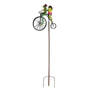 Our unique Bicycling Frogs Wind Spinner will bring a smile every time you look at it. This wonderful, whimsical garden art features two colorful frogs aboard a vintage penny farthing style bicycle built for two.