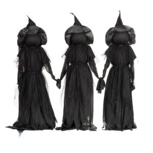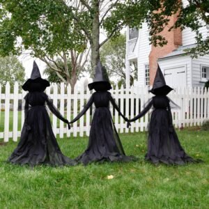 This triplet of witches hold hands in an eerie exhibit of sinister sisterhood. You’ll love the specter they create in your front yard – and their included ground stakes make them so easy to display.
