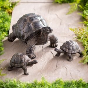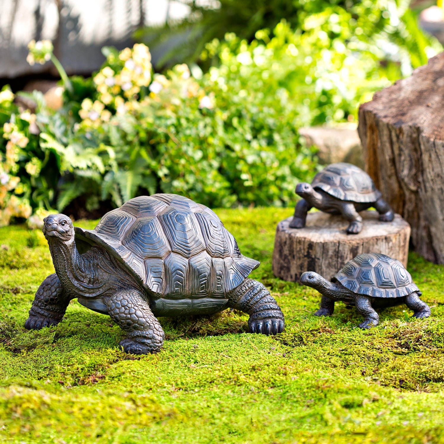 This delightful tortoise trio will slowly and steadily make their way into your list of garden-gracing favorites. Cast in resin with intricate, realistic reptile details, the family makes a welcome addition to yard and garden, and can also be displayed indoors.