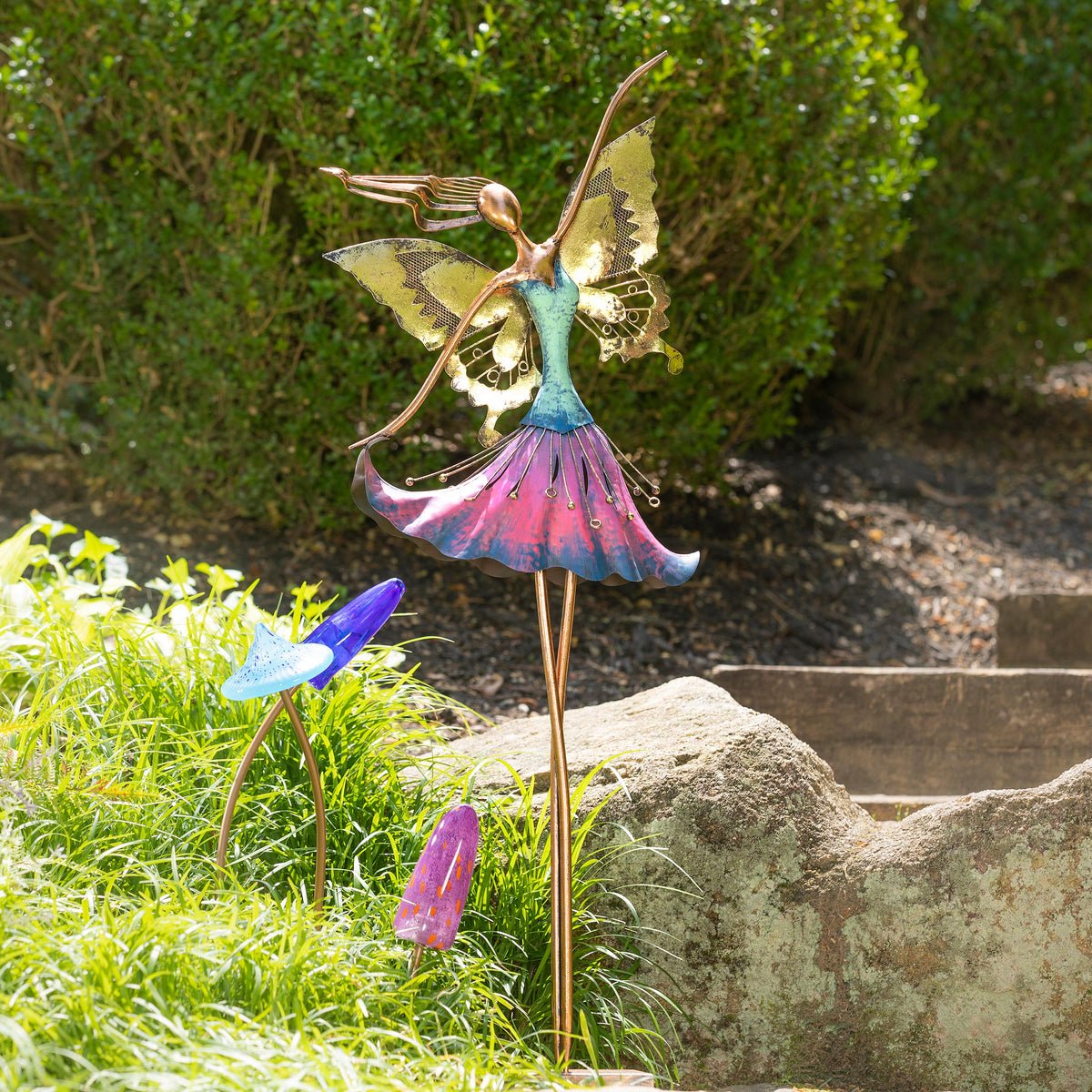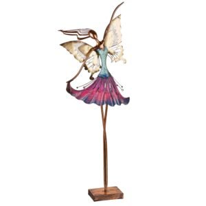 This graceful Oversized Bronze Fairy Garden Statue is the perfect way to add a bit of elegance and whimsy to any space indoors or out. The statue fits perfectly on a porch, garden, patio and so much more with the slender base. This statue features delicate looking details but is made of 100% outdoor-safe metal for long-lasting use. The laser-cut wings are artfully secured to the design and have been brushed with gold leaf for a high-end look. Standing over 3′ tall, this statue adds a statement anywhere. Set it out as a seasonal decoration or use for multiple seasons to enhance any space with its whimsical, fairy details.