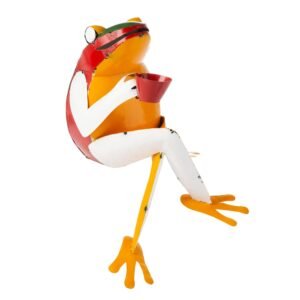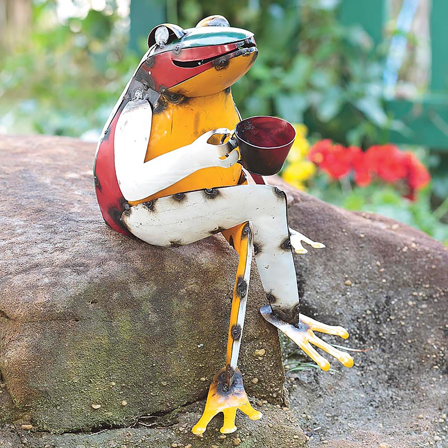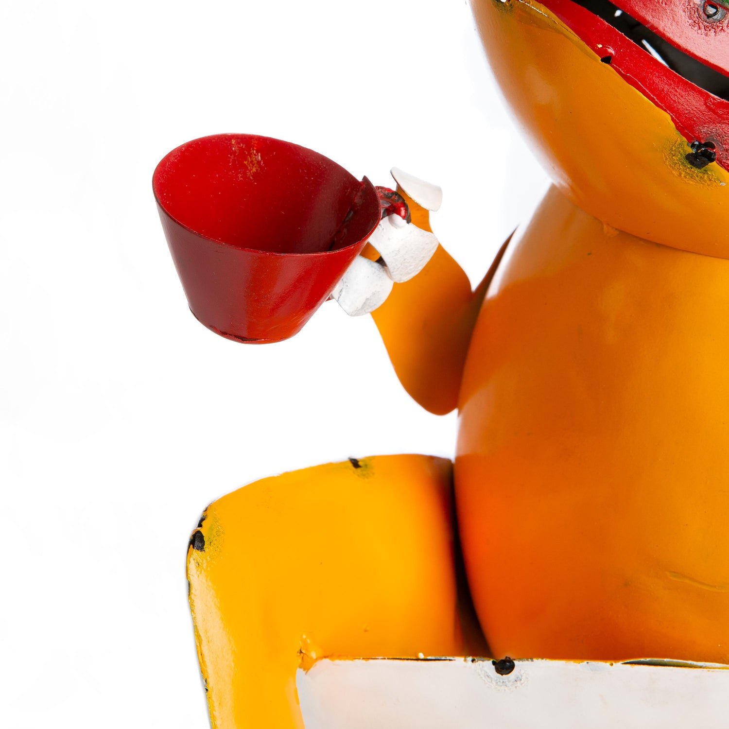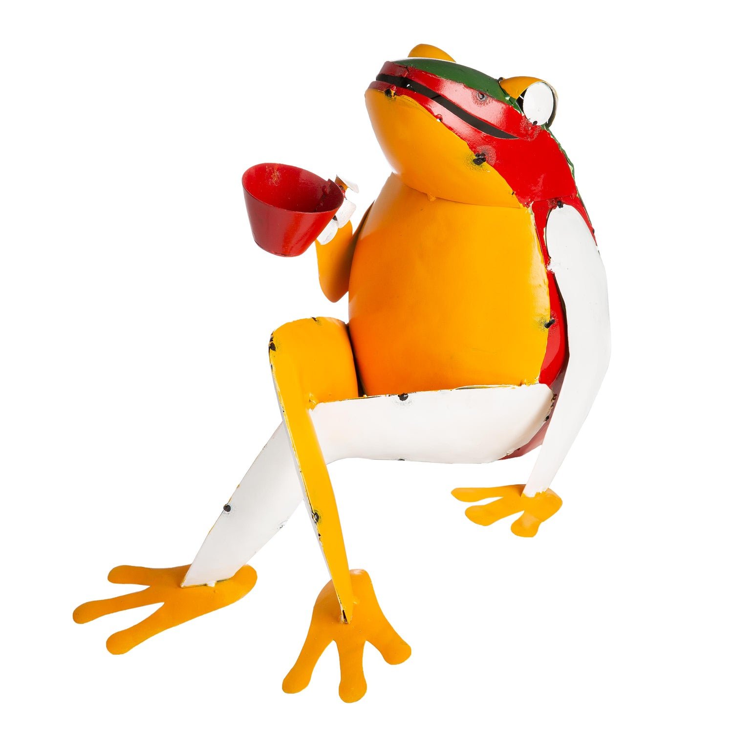 Colorful and eye-catching, our delightful Recycled Metal Coffee Frog Garden Art will always make you smile.