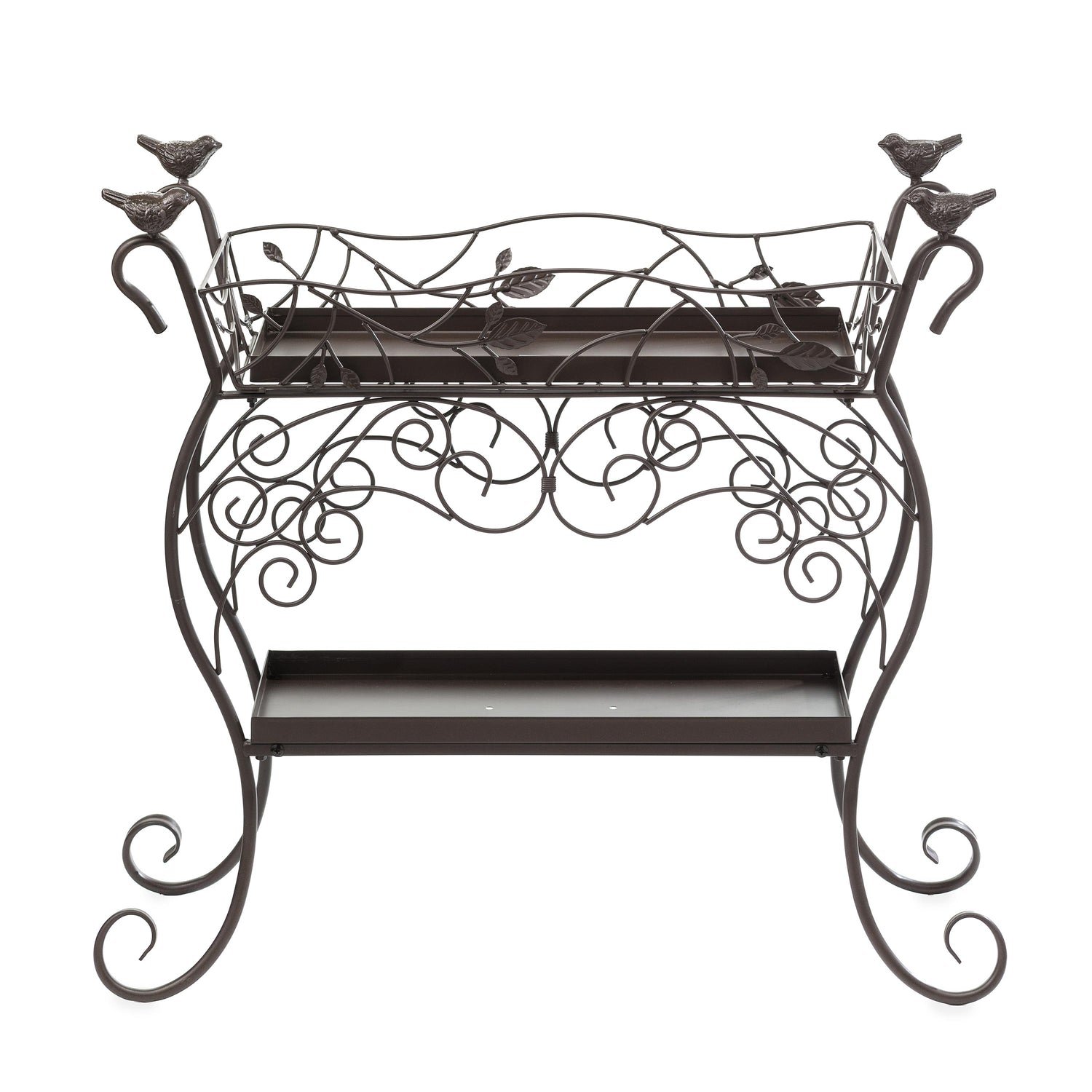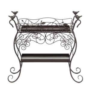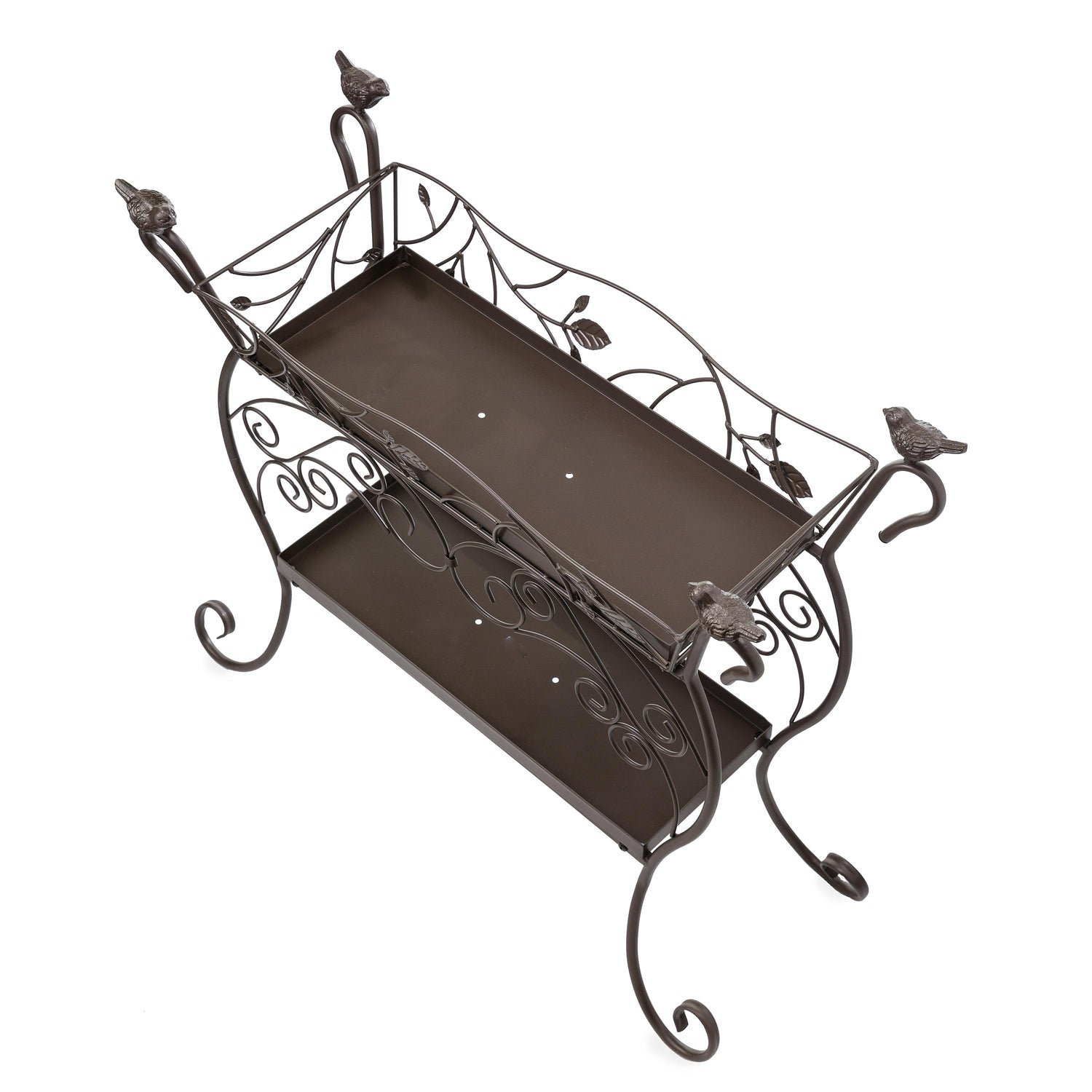 This Two-Tiered Cast Iron Plant Stand with Birds will be the new star of your outdoor decor with its beautiful scrolling vines and charming bird details. The cast iron and metal construction with powder-coat finish makes it a great indoor/outdoor accent, and it’s built to last.